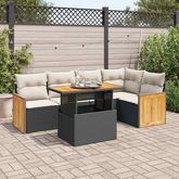Salon de jardin 6 pcs avec coussins noir resine tressee acacia