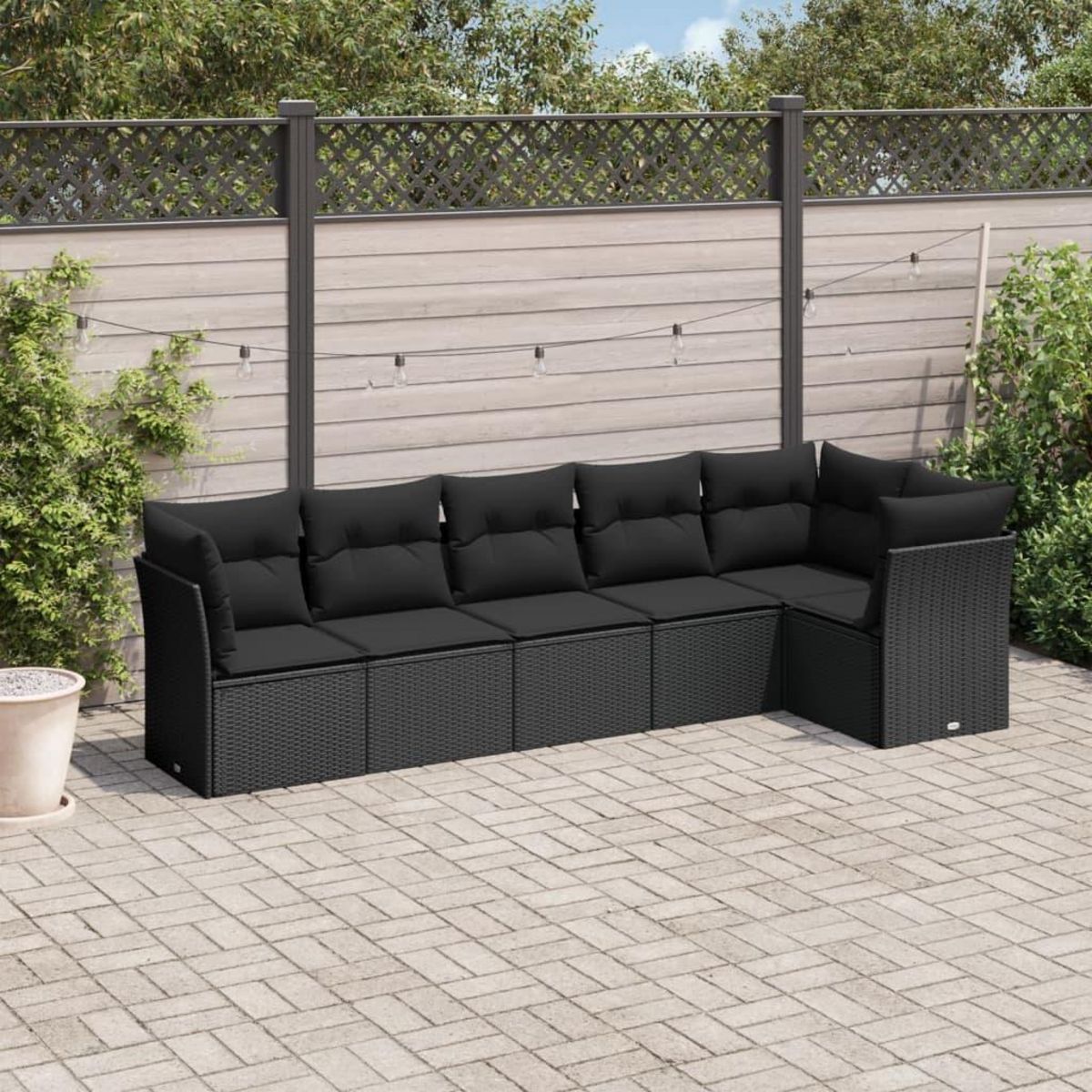 Salon de jardin 6 pcs avec coussins noir resine tressee