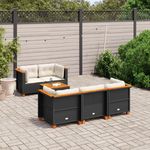 Salon de jardin 6 pcs avec coussins noir resine tressee