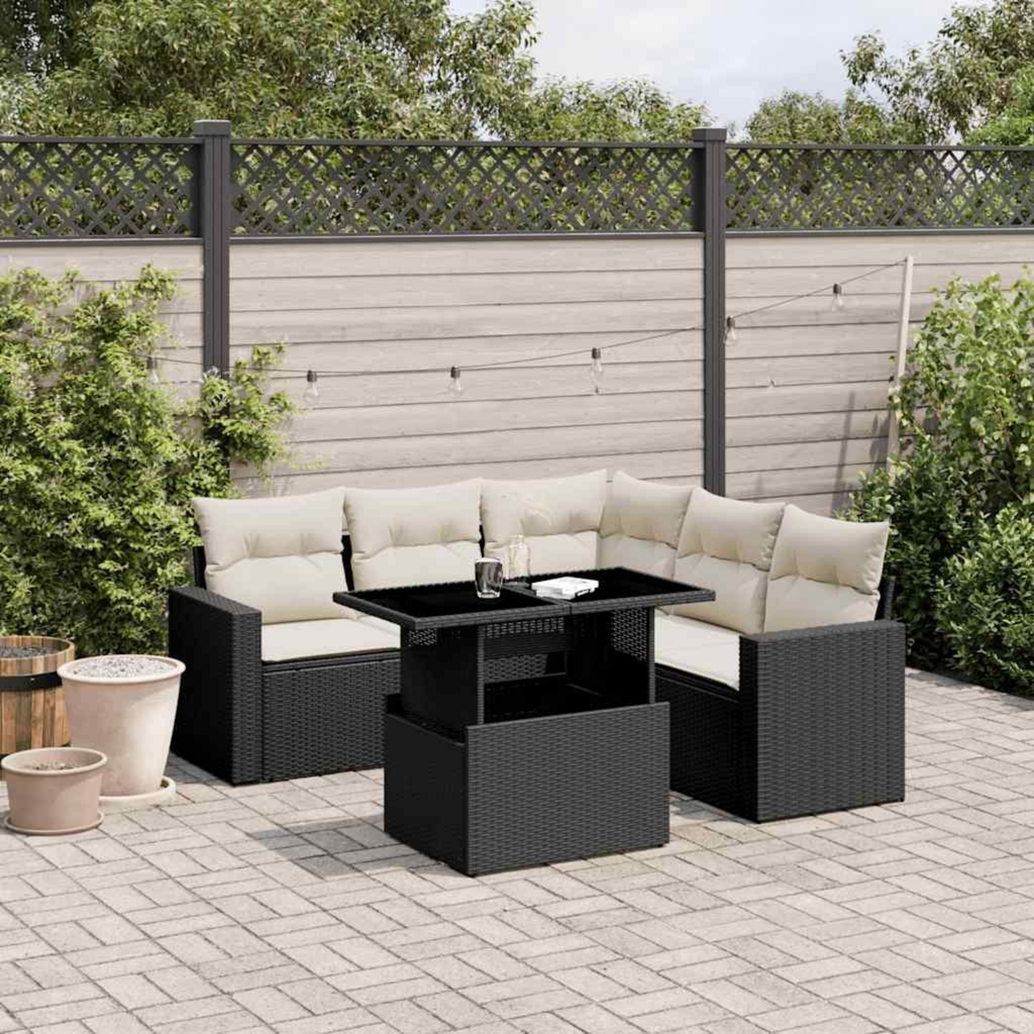 Salon de jardin 6 pcs avec coussins noir resine tressee