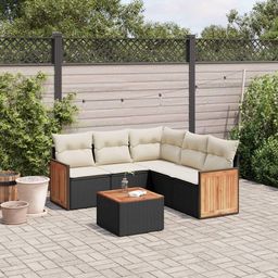 Salon de jardin 6 pcs avec coussins noir resine tressee