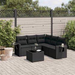 Salon de jardin 6 pcs avec coussins noir resine tressee