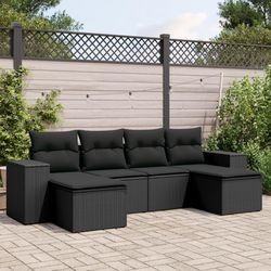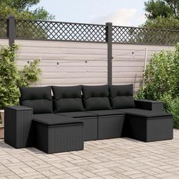 Salon de jardin 6 pcs avec coussins noir resine tressee