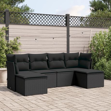 Salon de jardin 6 pcs avec coussins noir resine tressee