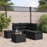 Salon de jardin 6 pcs avec coussins noir resine tressee