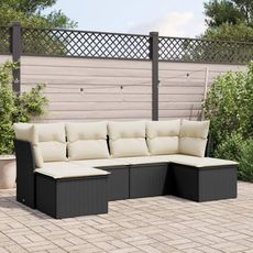 Salon de jardin 6 pcs avec coussins noir resine tressee