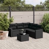 Salon de jardin 6 pcs avec coussins noir resine tressee