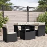 Salon de jardin 6 pcs avec coussins noir resine tressee