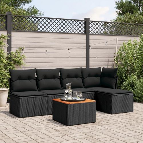 Salon de jardin 6 pcs avec coussins noir resine tressee