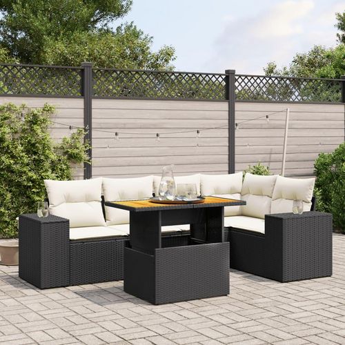 Salon de jardin 6 pcs avec coussins noir resine tressee