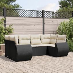 Salon de jardin 6 pcs avec coussins noir resine tressee
