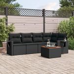 Salon de jardin 6 pcs avec coussins noir resine tressee
