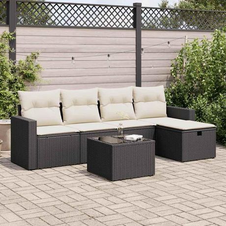 Salon de jardin 6 pcs avec coussins noir resine tressee
