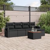 Salon de jardin 6 pcs avec coussins noir resine tressee
