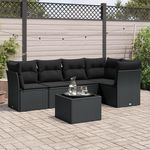 Salon de jardin 6 pcs avec coussins noir resine tressee
