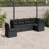 Salon de jardin 6 pcs avec coussins noir resine tressee