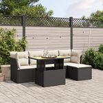 Salon de jardin 6 pcs avec coussins noir resine tressee