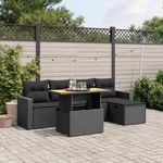 Salon de jardin 6 pcs avec coussins noir resine tressee