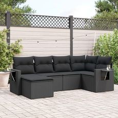 Salon de jardin 6 pcs avec coussins noir resine tressee