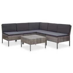 Salon de jardin 6 pcs avec coussins resine tressee gris