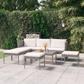 Salon de jardin 6 pcs avec coussins resine tressee gris
