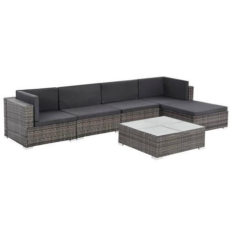 Salon de jardin 6 pcs avec coussins resine tressee gris