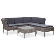 Salon de jardin 6 pcs avec coussins resine tressee gris