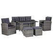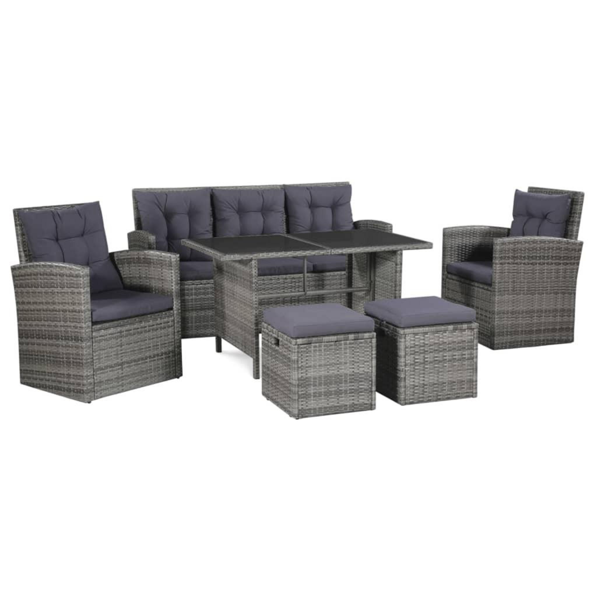 Salon de jardin 6 pcs avec coussins resine tressee gris