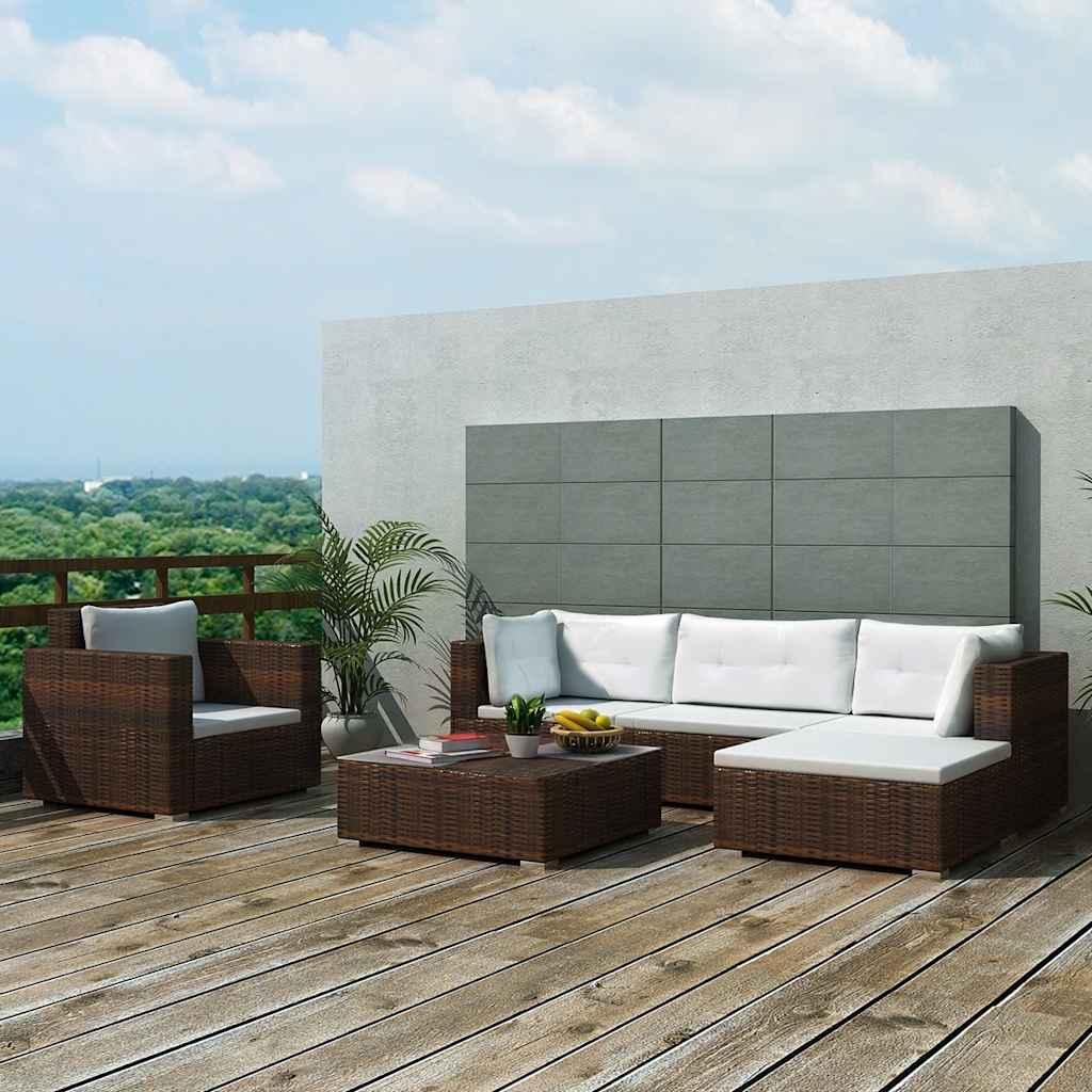 Salon de jardin 6 pcs avec coussins Resine tressee Marron