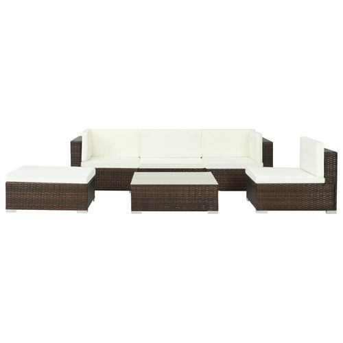 Salon de jardin 6 pcs avec coussins Resine tressee Marron