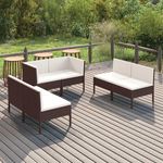 Salon de jardin 6 pcs avec coussins Resine tressee Marron