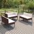 Avec de la resine tressee resistante aux intemperies, l'ensemble de meubles d'exterieur est facile a nettoyer et a entretenir. Le cadre en acier enduit de poudre l'ensemble de salon de patio stable et solide. Equipe de coussins epais et moelleux, ce salon de jardin offrira un confort d'assise ultime. Les housses en polyester, faciles a nettoyer, peuvent etre retirees et lavees. De plus, grace a leur conception legere et modulaire, vous pouvez deplacer cet ensemble dans votre maison avec une grande facilite.