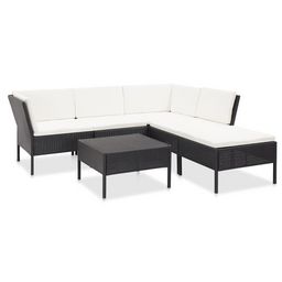 Salon de jardin 6 pcs avec coussins Resine tressee Noir
