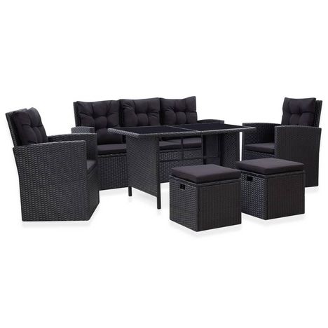 Salon de jardin 6 pcs avec coussins Resine tressee Noir