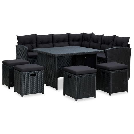 Salon de jardin 6 pcs avec coussins resine tressee noir