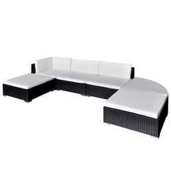 Salon de jardin 6 pcs avec coussins resine tressee noir