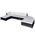La livraison comprend 1 canape d'angle, 2 sieges sans accoudoirs, 2 tabourets, 1 tabouret en forme de ventilateur, 6 coussins de siege et 4 coussins de dossier.