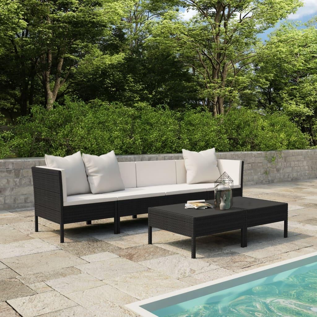Salon de jardin 6 pcs avec coussins resine tressee noir