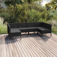 Salon de jardin 6 pcs avec coussins resine tressee noir