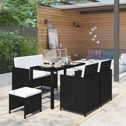 Salon de jardin 6 pcs avec coussins Resine tressee Noir