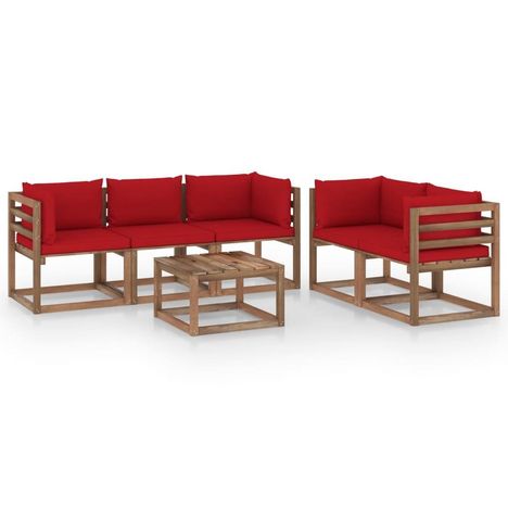 Le salon de jardin est en bois de pin impregne, ce qui le rend durable et resistant aux intemperies. Cet ensemble de meubles a une construction solide et necessite peu d'entretien. Grace a la tapisserie 100 % polyester et au rembourrage epais, les coussins inclus sont doux et confortables.