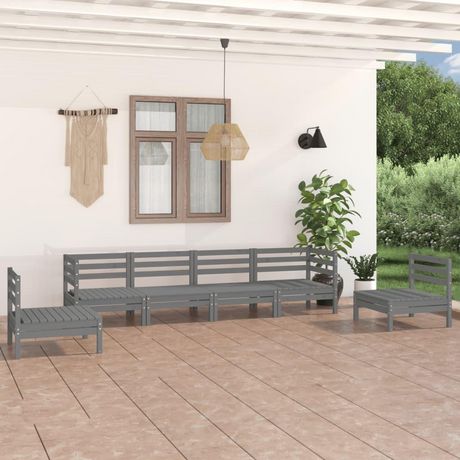 Salon de jardin 6 pcs Gris Bois de pin massif
