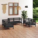 Salon de jardin 6 pcs Noir Bois de pin massif
