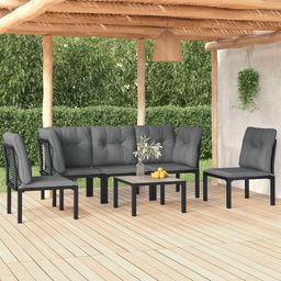 Salon de jardin 6 pcs noir et gris resine tressee