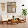 Salon de jardin 7 pcs avec coussin Creme Bois d'acacia solide