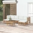 Salon de jardin 7 pcs avec coussins blanc creme bambou