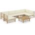Salon de jardin 7 pcs avec coussins blanc creme bambou
