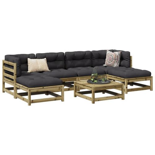 Salon de jardin 7 pcs avec coussins bois de pin impregne