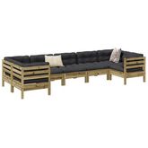 Salon de jardin 7 pcs avec coussins bois de pin impregne