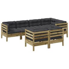 Salon de jardin 7 pcs avec coussins bois de pin impregne